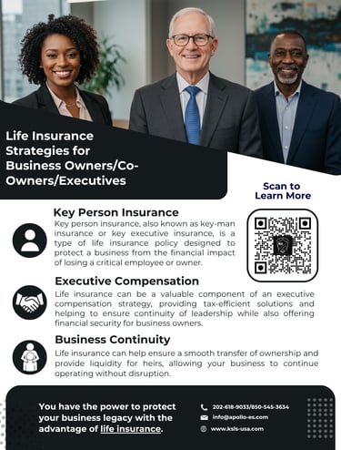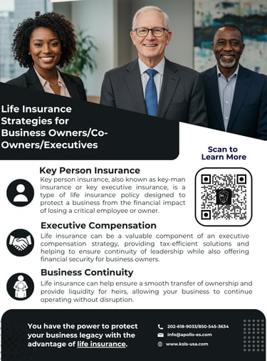 Apollo Enterprises & Services LLC (AES) is doing business as Key Shield Legacy Solutions, USA. AES is a boutique business consulting firm specializing in research, business development, technology integration consulting, business continuity strategy and key person protection using life insurance, and general business strategy. Content found on this website is for informational purposes and should not be construed as advice or recommendations to be acted on. Although we strive to provide the most accurate and up-to-date information, it is the responsibility of the user to research and consult with experts in their respective field before taking any actions that may affect their situation either in the near term or long term. Users of this website use the information provided at their own risk and by using this site take full responsibility for any actions taken resulting from content provided. By using this website or any of the content found herein the user absolves Key Shield Legacy Solutions USA, Apollo Enterprises & Services, LLC its members, affiliates, consultants from any harm resulting from the use of this website and any digital content provided. Content on the site may be authored or developed by other providers or parties and is subject to their terms of use. We strive to keep our users information private and will not intentionally sell or distribute your data without consent. View our Privacy Policy here. We Do Not Sell Your Personal Information.